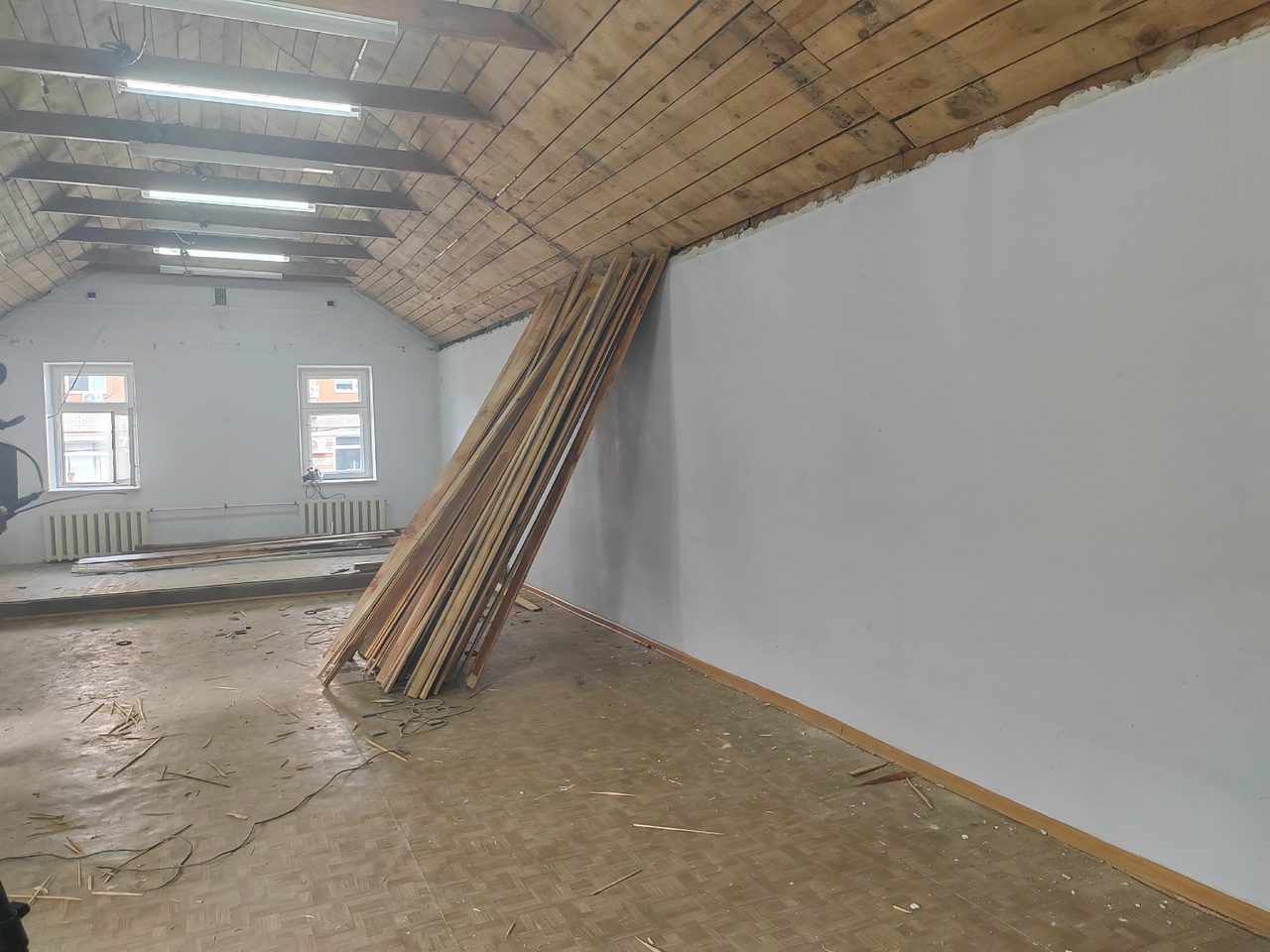 Помимо ремонта потолка рабочие отштукатурят стены выставочного зала, заменят окна, радиаторы и двери, а также напольное покрытие. Назначение помещения предусматривает установку дополнительных боковых светильников, которые обеспечат более яркую подсветку картин.