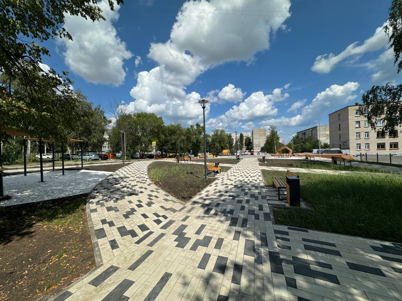 Основной комплекс работ по благоустройству уже проведен. Отдельные моменты подрядчик планирует завершить в ближайшие две недели. Новый сквер появился благодаря региональному проекту «Дорога к дому всей семьей».