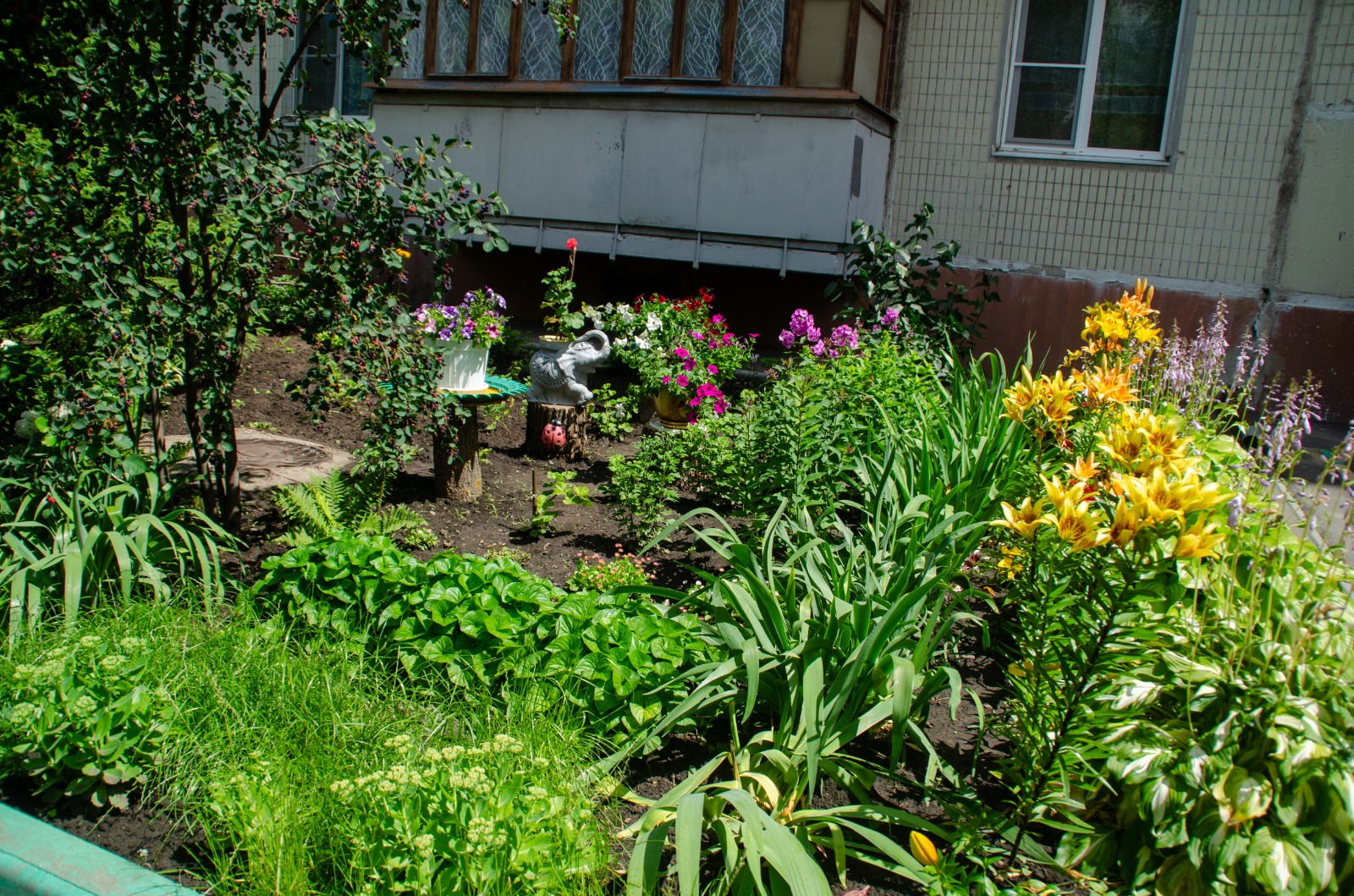 Сейчас цветочные клумбы — у каждого подъезда. И в каждой — своя изюминка. Лилии, колокольчики, гортензии, георгины и, конечно же, розы. За таким «богатством» ухаживают все вместе.