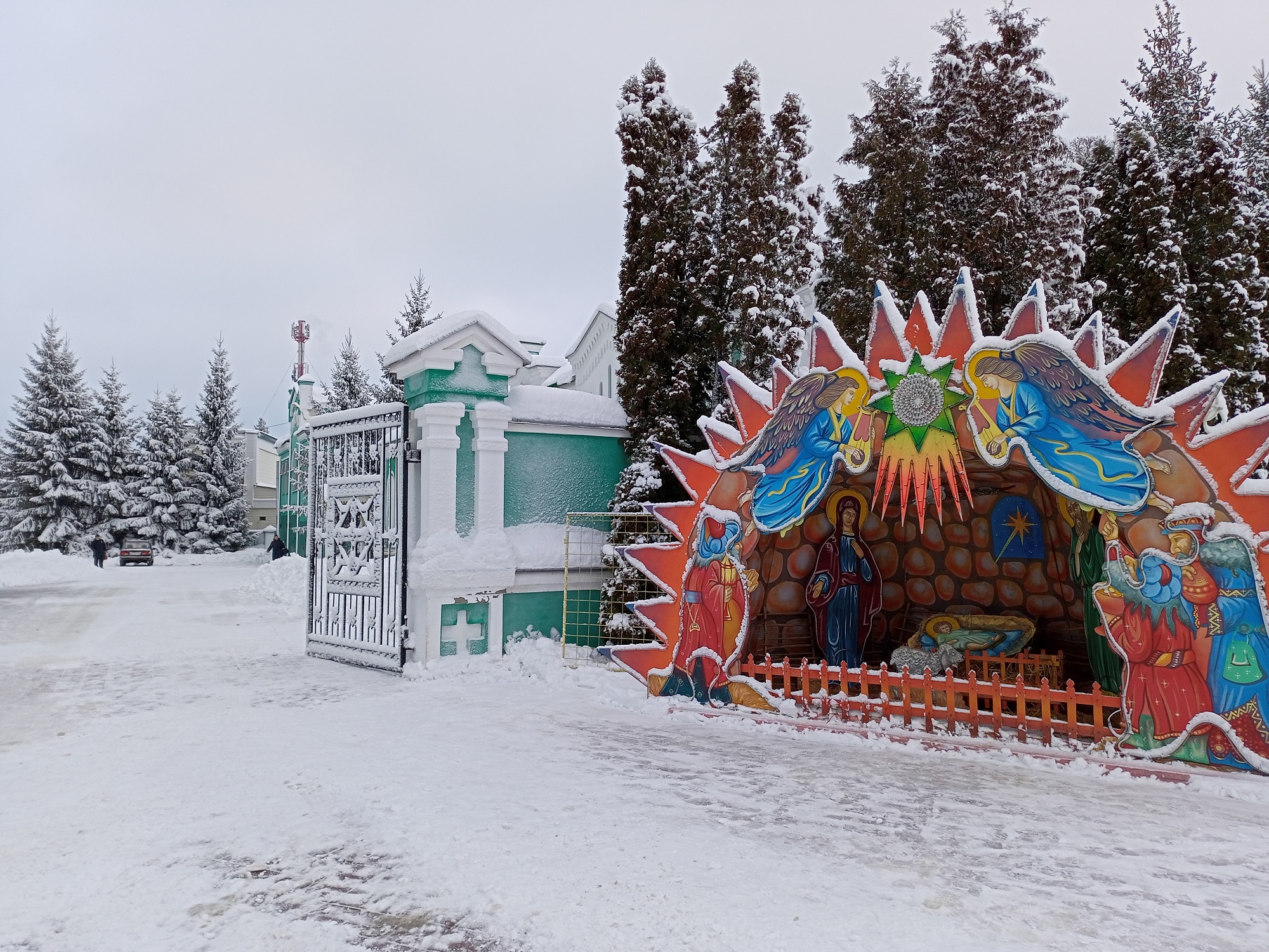 В домах, на площадях и улицах появляются вертепы. Это изображения Вифлеемской пещеры, где родился Спаситель. Младенец лежит в яслях – кормушке для животных, укрытых в пещере на ночь. Над Ним склоняются Пречистая Матерь и праведный Иосиф. Рядом стоят пастухи, которые первыми пришли поклониться Христу. Над сводом сияет восьмиконечная звезда, указавшая на святое место восточным мудрецам – волхвам. Звезда стала еще и символом для украшения ёлки: её крепят на верхушку дерева.