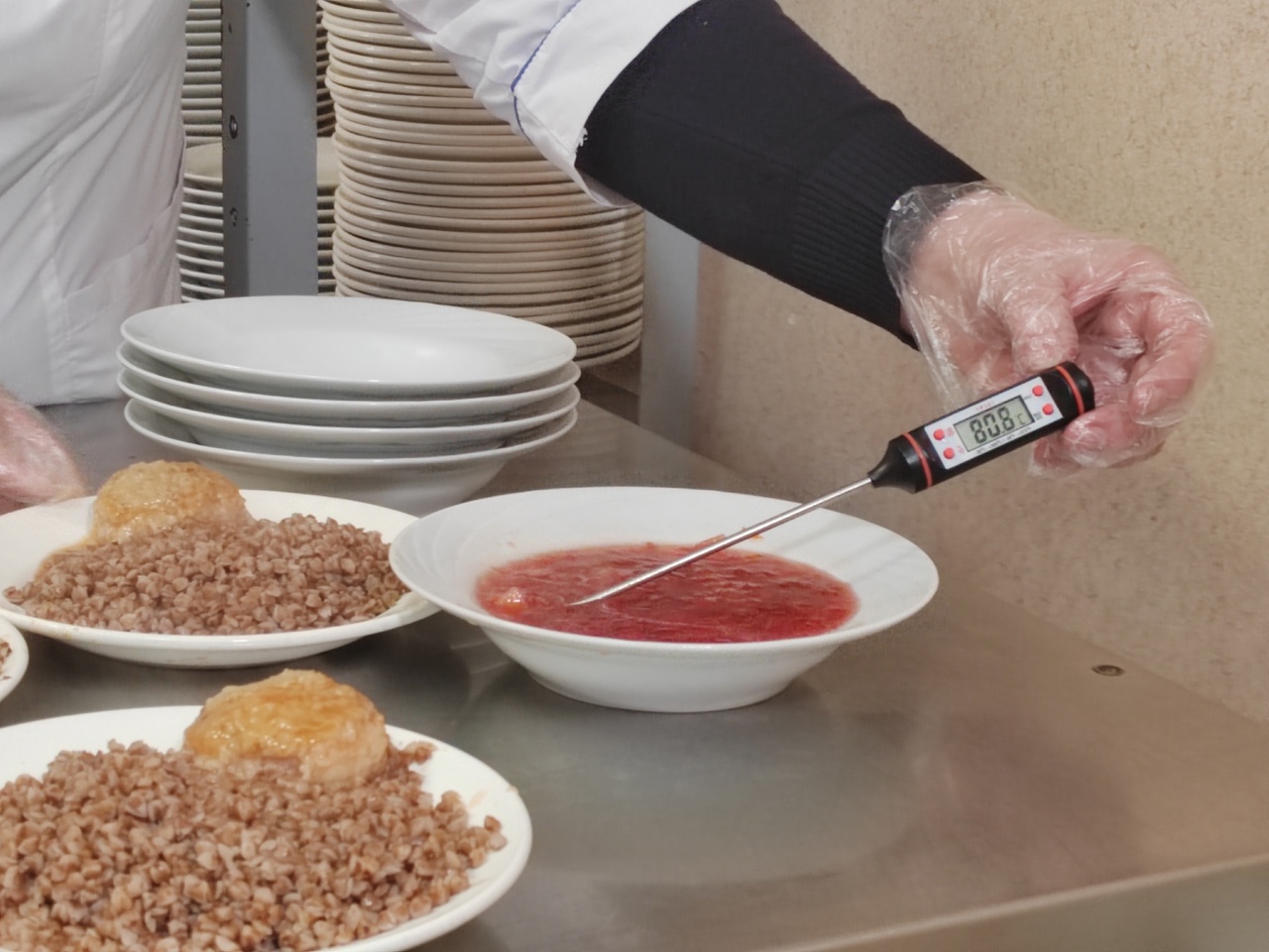 Сотрудники Роспотребнадзора нарушений в столовых не выявили. Все сотрудники работали в форме, в перчатках, еду подавали вовремя. Температура горячих блюд соответствовала норме на момент подачи.