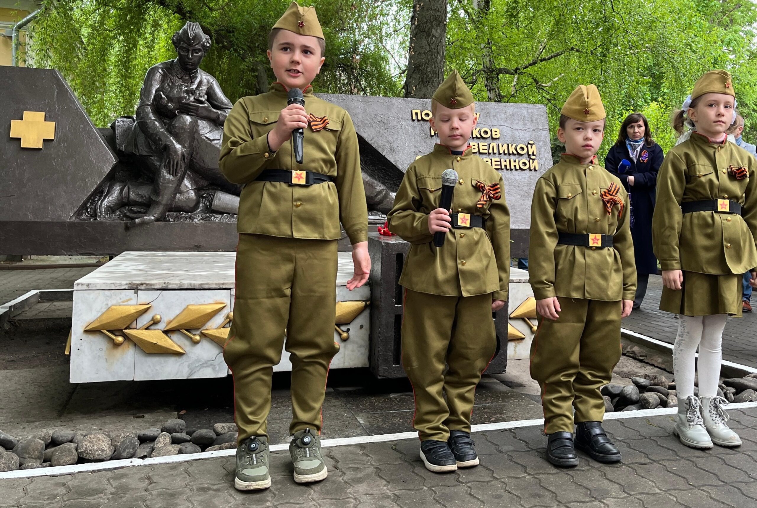 У памятника – руководство города и области, представители медицинского сообщества, активисты «Движения Первых», юнармейцы. И самые юные участники – дошколята из детского сада №44 «Белоснежка».