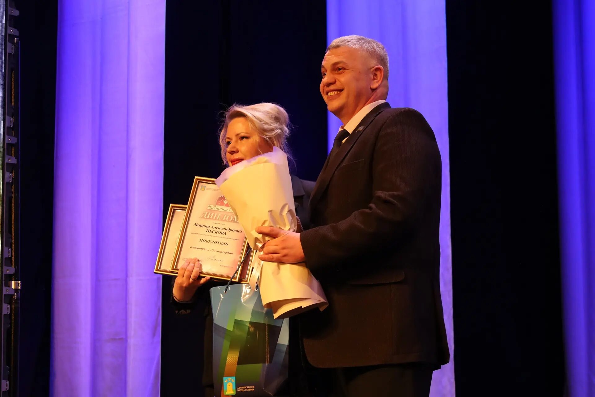 Руководитель группы неравнодушных людей «Милосердие» Марина Пескова получила диплом победителя в номинации «По зову сердца» из рук главы муниципального образования — председателя Тамбовской городской Думы, участника СВО, президентской программы подготовки кадров «Время героев» Константина Кутейникова.