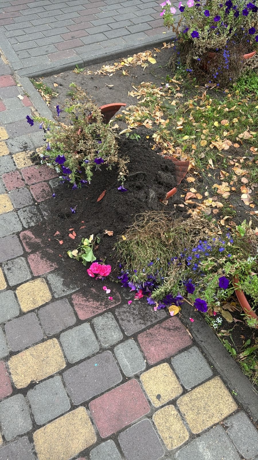 От рук вандалов часто страдают зеленые насаждения. Так, в ночь с субботы на воскресенье юные велосипедисты намеренно проехали по кашпо с цветами и поломали их.