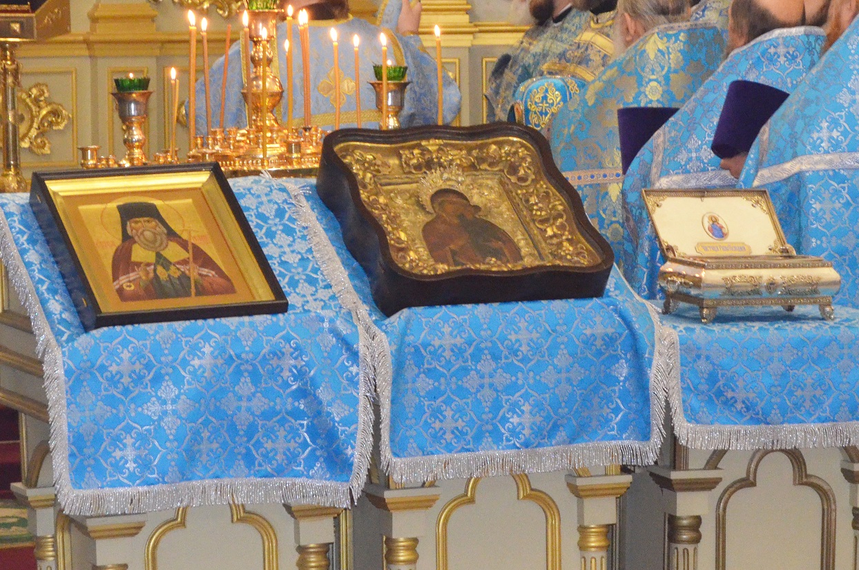 В Тамбов по благословению Святейшего Патриарха Московского и всея Руси Кирилла привезли святыни из Свято-Введенского Толгского женского монастыря Ярославской епархии – частицу Ризы Иисуса Христа, список чудотворной Толгской иконы Божией Матери и образ святителя Игнатия (Брянчанинова) с частицей мощей.