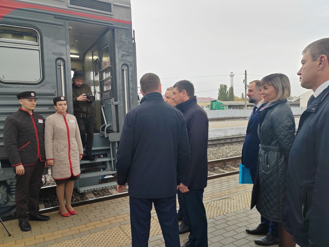 Вагон осмотрели глава Тамбовской области Евгений Первышов и начальник ЮВЖД – филиала ОАО «РЖД» Игорь Наталенко в рамках III Форума по развитию железнодорожного туризма в Центральном Черноземье. Форум проходит сегодня на площадке Музейного комплекса «Усадьба Асеевых».