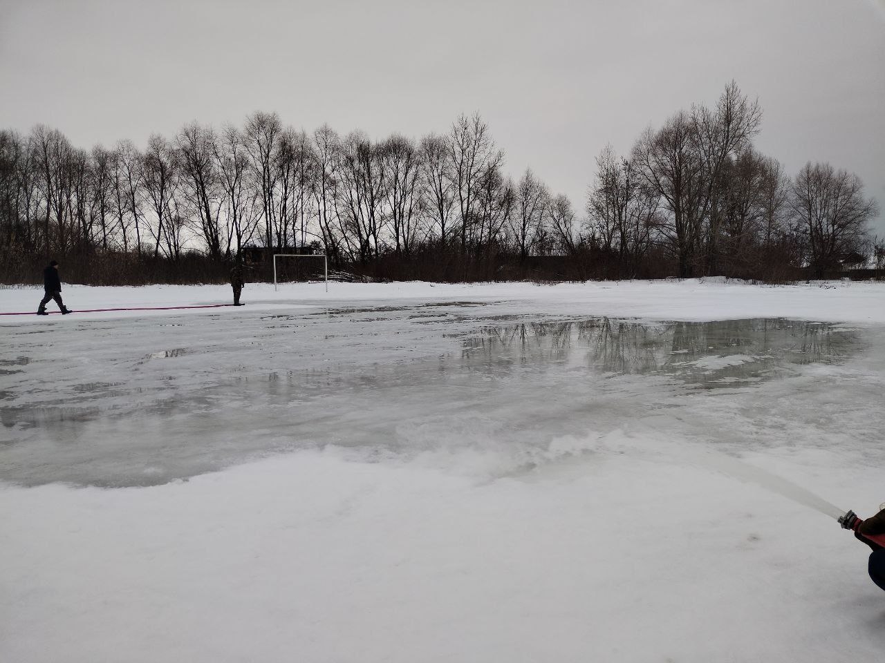 В Тамбове приступили к заливке большого уличного катка за Тезиковым мостом. За несколько дней специалисты сформировали снежную подушку, ее проливают водой несколько раз в день, чтобы создать ровную поверхность. Параллельно идут работы на территории Тамбов-4. Всего в городе будет создано около 30 катков.