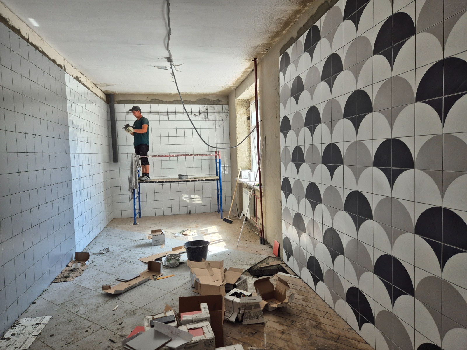 «В ближайшие две недели подрядчики закончат работы на кровле, в том числе установят оголовки вентиляционных каналов. Эти работы были отложены из-за продолжительных дождей. Внутри рабочие красят стены, выкладывают пол плиткой, готовят санузлы. Совсем скоро начнутся окончательные отделочные работы. Дизайн-проект первого этажа и основной лестничной арки уже готов и будет выполнен в едином стиле, связанном с летной тематикой и летчиками-героями», — пояснила Елена Леонова.