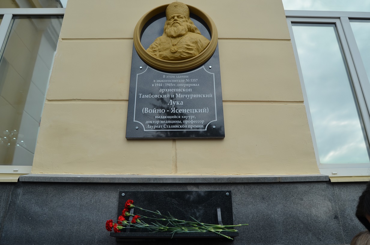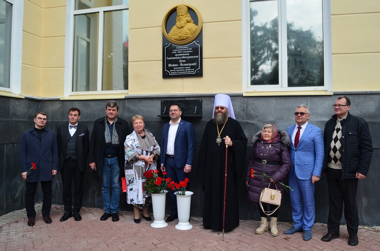 После конференции на здании Медицинского института Державинского университета была открыта мемориальная доска с портретом святителя Луки и надписью: «В этом здании в эвакогоспитале №5357 в 1944-1945 гг. оперировал архиепископ Тамбовский и Мичуринский Лука (Войно-Ясенецкий) – выдающийся хирург, доктор медицины, профессор, лауреат Сталинской премии». Автор композиции – скульптор, член Союза художников России Виктор Остриков.