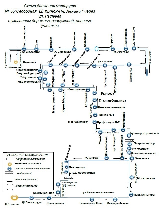 «Путь следования будет проходить от улицы Гвардейской до железнодорожного вокзала по улицам Селезневской, Бабарыкина, Васильковой, Свободной, Запрудной, Советской, Агапкина, Мичуринской, Магистральной, Рылеева, бульвару Энтузиастов, Советской, Чичканова, Базарной, Октябрьской, Красной и Интернациональной», – прокомментировали в «Пассажирских перевозках».