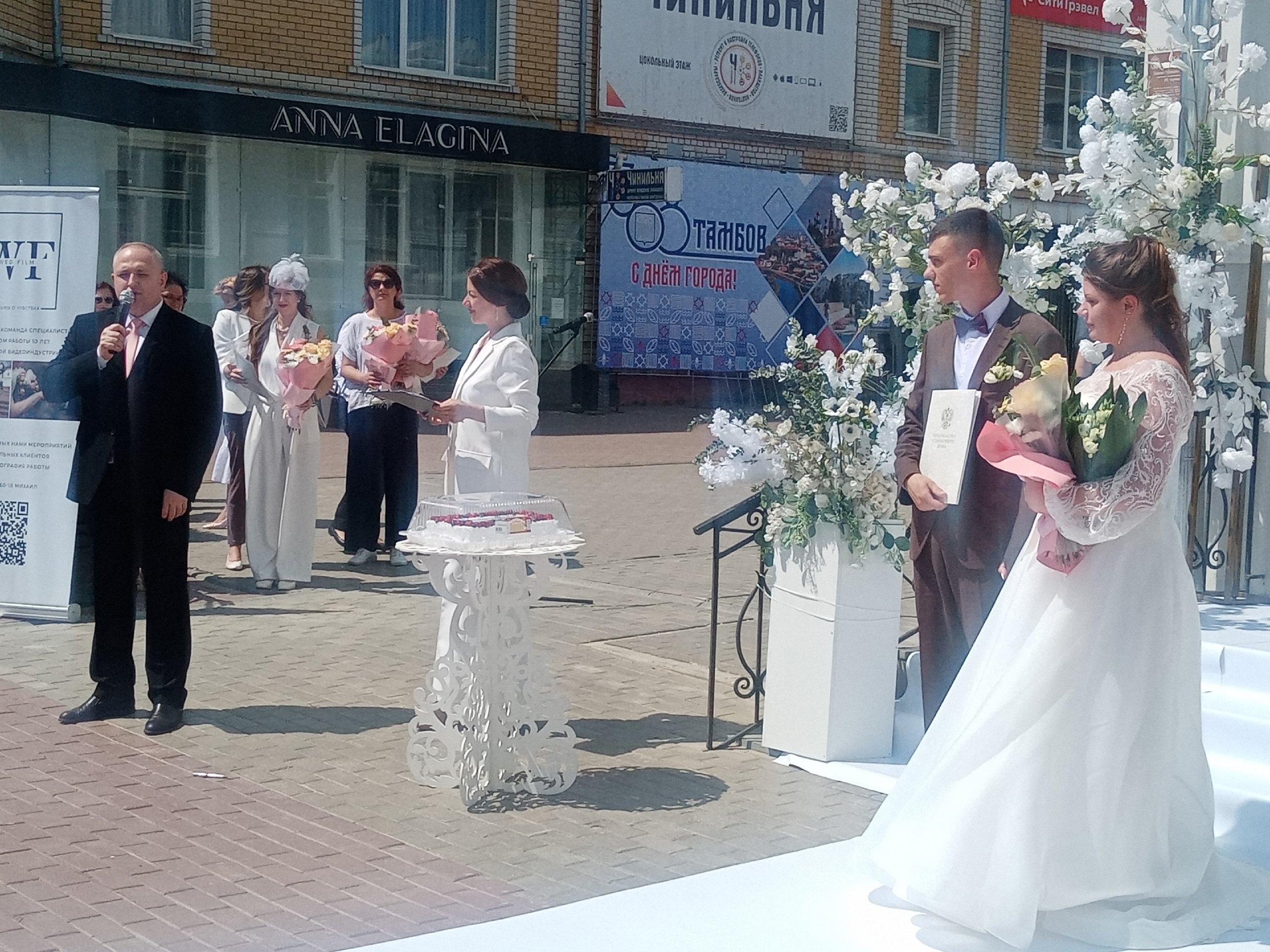В День города в Тамбове родилась семья Ивана и Алины Ермолаевых. Церемония регистрации прошла на площадке перед Дворцом бракосочетания. Свидетельство о браке молодым вручил лично глава администрации Тамбова Максим Косенков.