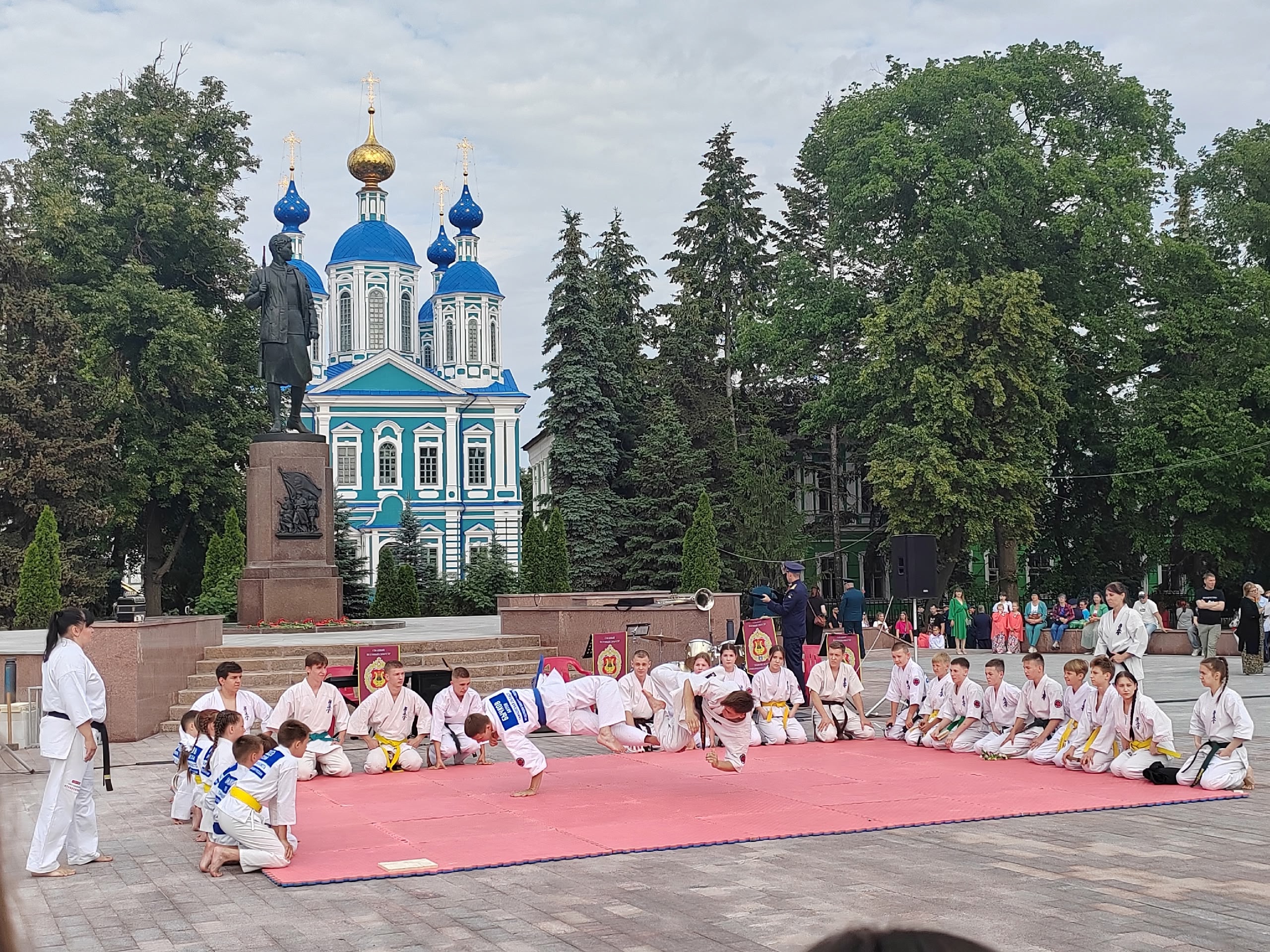Для гостей праздника подготовили большую и яркую концертную программу: вокальные и хореографические номера, виртуозное выступление сводного военного духового оркестра Тамбовского территориального гарнизона, показательные выступления тамбовских каратистов.