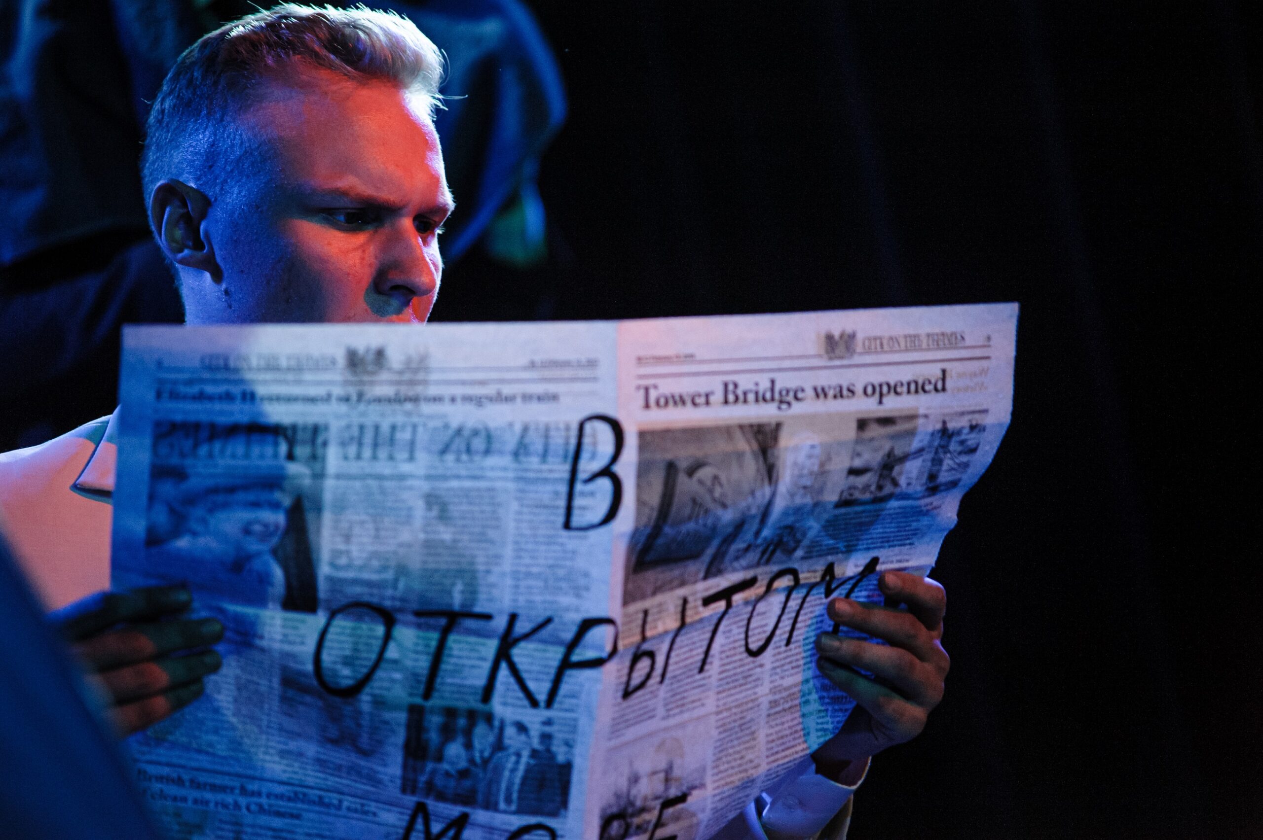 На камерной сцене Тамбовского драматического театра прошла премьера спектакля «В открытом море» (16+) по одноименной пьесе Славомира Мрожека. Руководители курса – главный режиссер Тамбовского драмтеатра Андрей Боровиков и актриса Ольга Сирото. Режиссер-постановщик – студент 4-го курса направления «Актерское искусство» Державинского университета Максим Мазыкин. В ролях: Алексей Колесниченко (Толстый), Илья Юркин (Средний), Максим Мазыкин (Малый), Ангелина Есаян (почтальон).