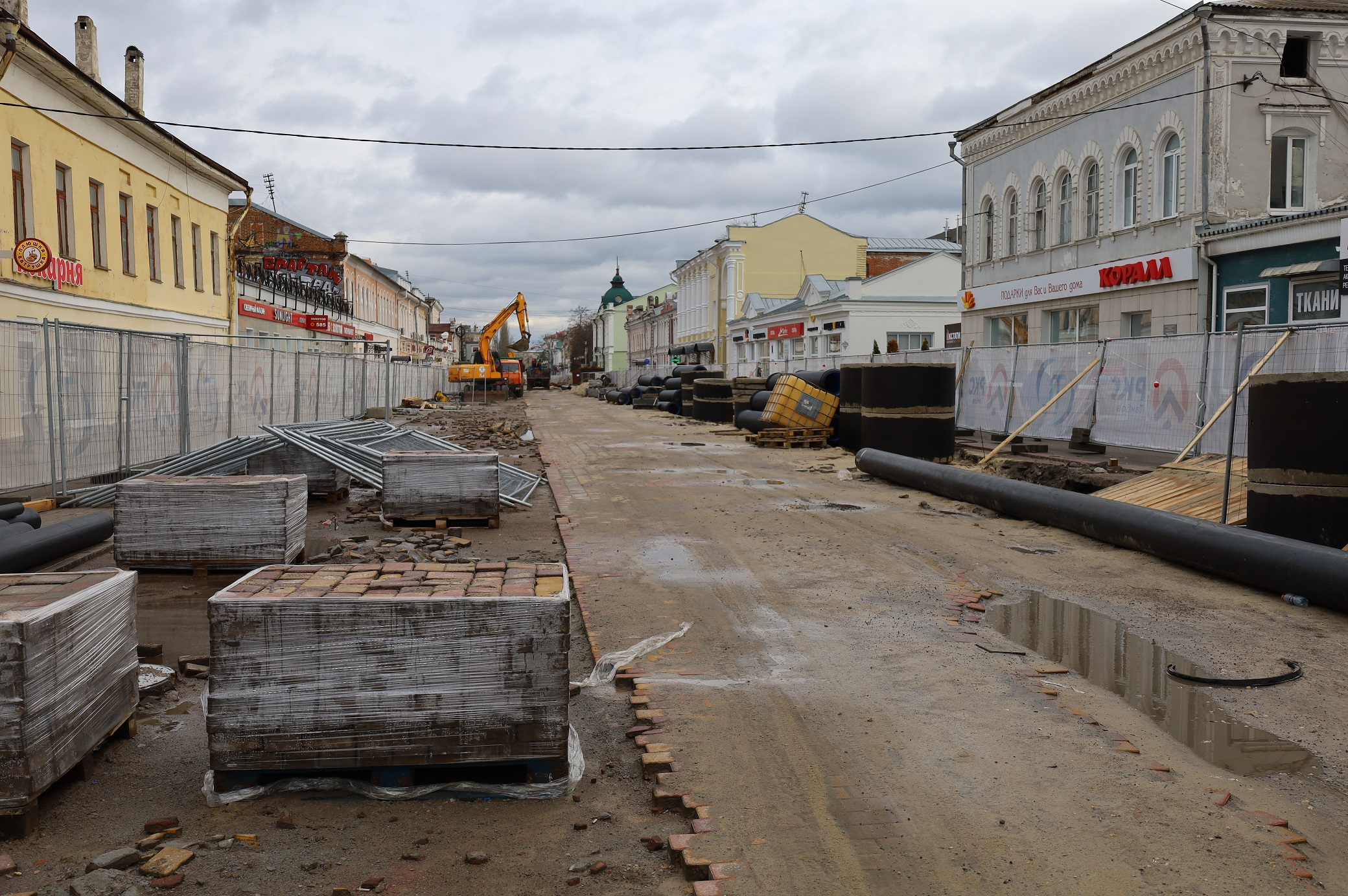 По завершении земляных работ отрезок улицы Коммунальной от Носовской до К. Маркса будет засыпан мелкой фракцией щебня. Укладывать асфальт или плитку в зиму нецелесообразно. Полноценное благоустройство Тамбовского Арбата начнется уже весной следующего года.