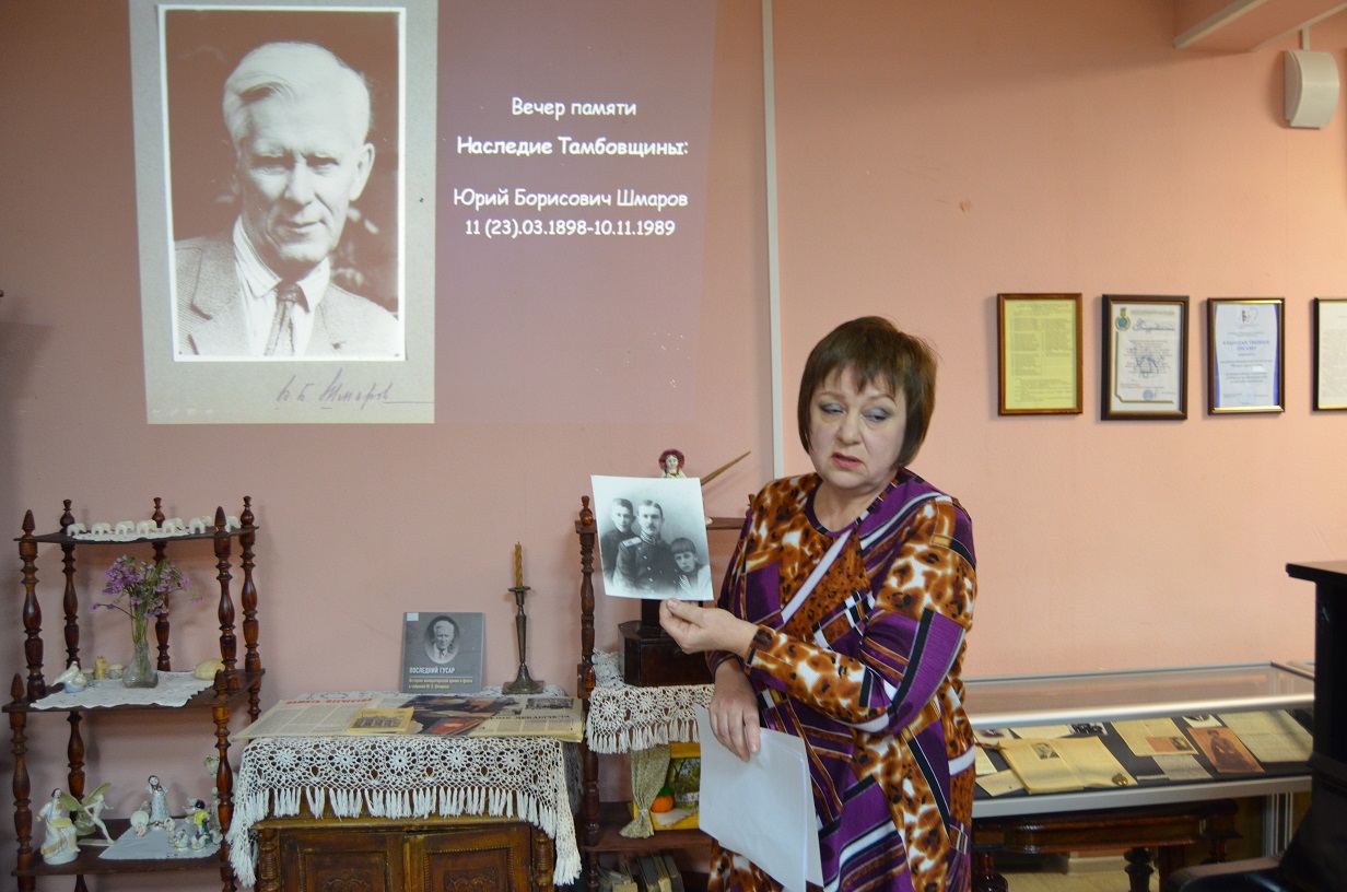 В Музейно-выставочном зале «История города Тамбова» вчера прошел вечер памяти «Наследие Тамбовщины: Юрий Борисович Шмаров». 10 ноября исполнилось 35 лет со дня кончины этого выдающегося человека – коллекционера, генеалога, исследователя истории российских дворянских родов. Наиболее полно раскрыть его образ музею помогло сотрудничество Тамбовского отделения Союза потомков российского дворянства – Российского Дворянского Собрания, Государственного музея им. А.С. Пушкина, Тамбовской областной библиотеки им. А.С.Пушкина, родственников Ю.Б. Шмарова.