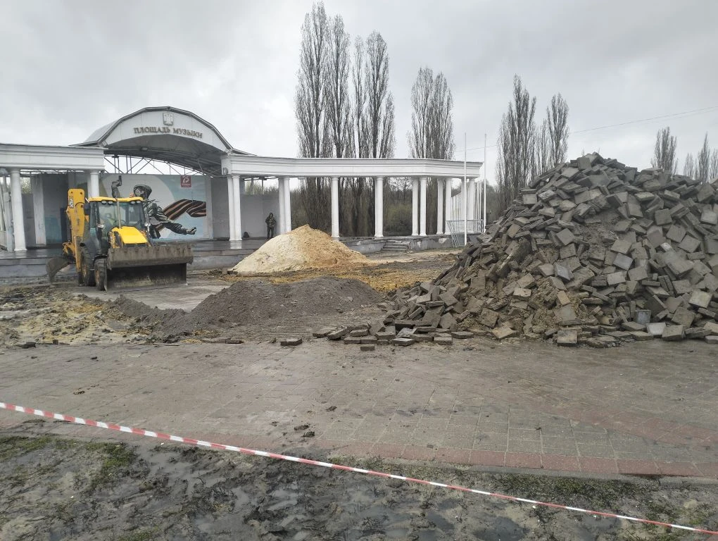 На Площади Музыки в Тамбове начался демонтаж тротуарной плитки, повреждённой гусеничной техникой при реконструкции канализационного коллектора на Набережной. Работы проводит компания «РКС-Тамбов», которая обязалась завершить восстановление благоустройства к середине июня.