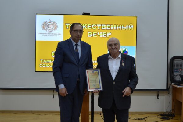 В честь знаменательной даты всем членам творческого союза вручили благодарственные письма и почетные грамоты. Всероссийской общественной награды – медали «Василий Шукшин» – удостоен прозаик и публицист, Почетный гражданин Тамбовской области Валерий Аршанский.