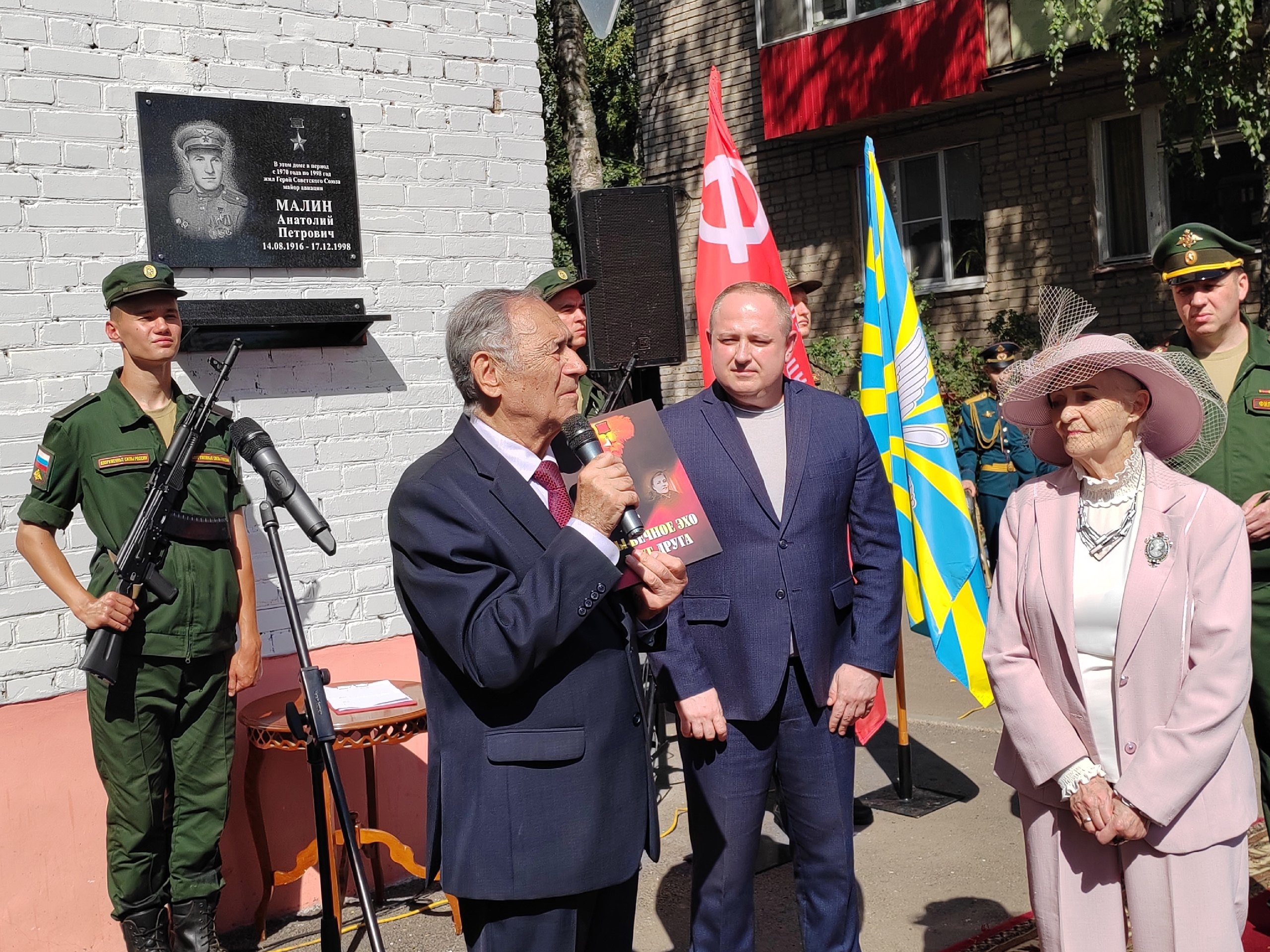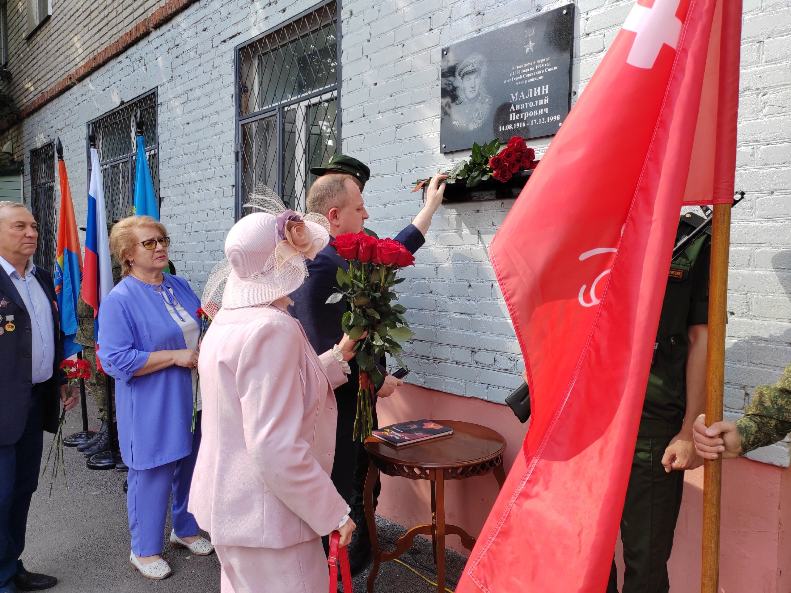 В Тамбове на стене дома №5 по улице Уборевича 14 августа торжественно открыли мемориальную доску в честь Героя Советского Союза, нашего земляка Анатолия Малина. Памятная табличка была на доме и раньше, ее устанавливали в 90-е годы прошлого века, но она обветшала. В этом доме сейчас живет дочь героя Ингрит Малина. В июле она обратилась к Главе региона Максиму Егорову с просьбой реставрации памятной доски.