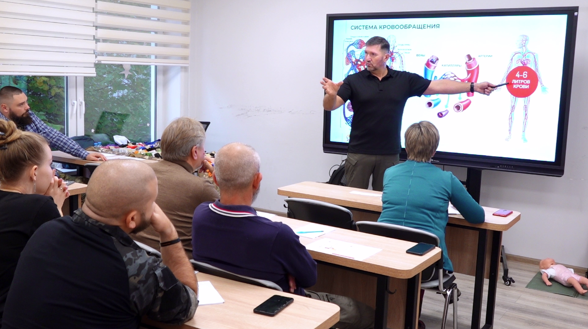 Тамбовские преподаватели ОБЗР в системе среднего профессионального образования проходят программу подготовки по оказанию первой помощи. Она рассчитана как на мирное время, так и на условия военного конфликта. Обучение проходит в Центре военно-патриотического воспитания «Вершина».