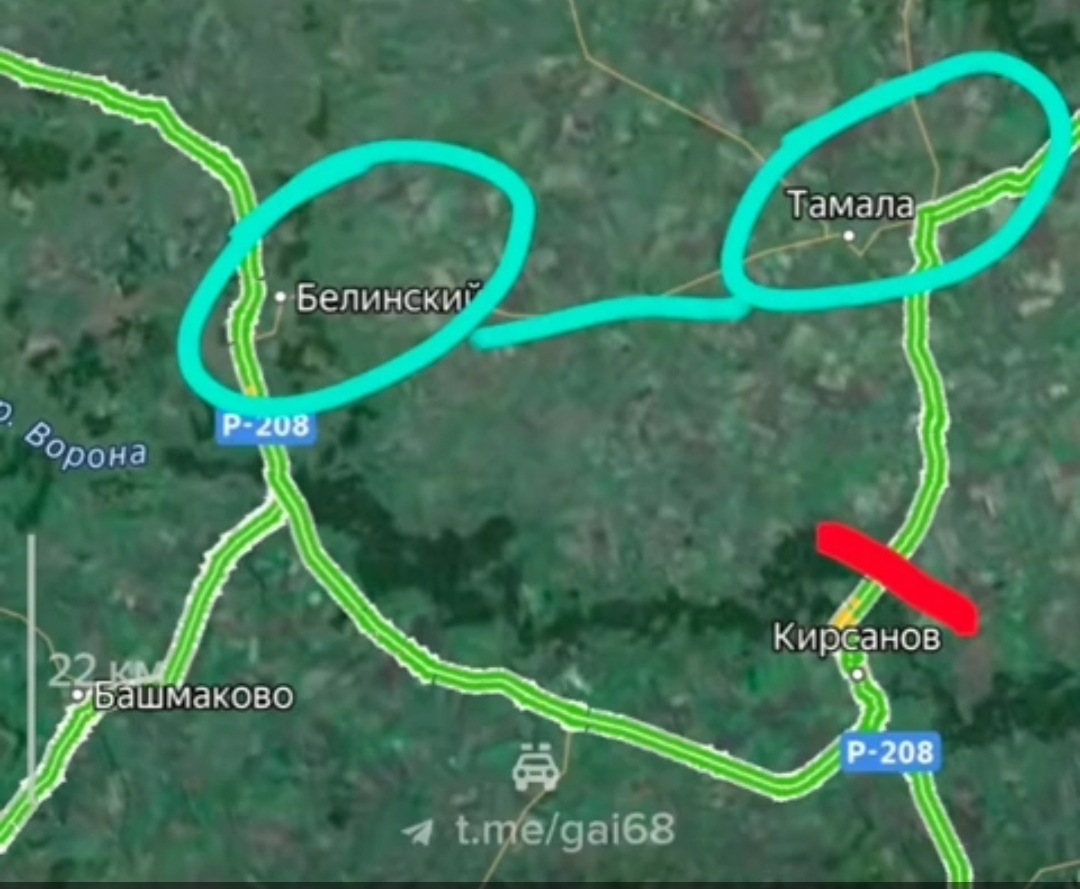 Госавтоинспекция Тамбовской области предупреждает о перекрытии движения в Кирсановском округе по трассе Р-208. Движение по мосту через реку Ворону на данный момент невозможно из-за сдвига моста с опор на 20 сантиметров.