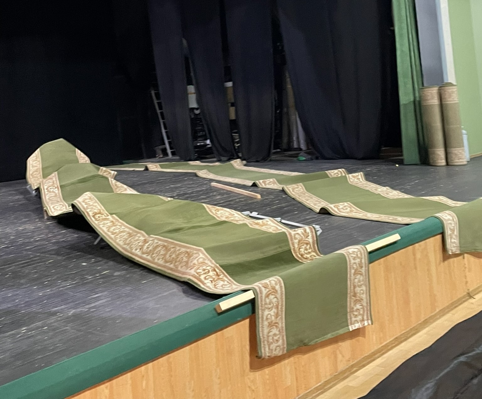 Кроме того, в театре привели в порядок ковровые дорожки зрительного зала и шторы в камерном зале и нижнем фойе театра. Ковры еще сохнут и ждут своего часа, чтобы вернуться на место, а шторы уже заняли свое положенное место.