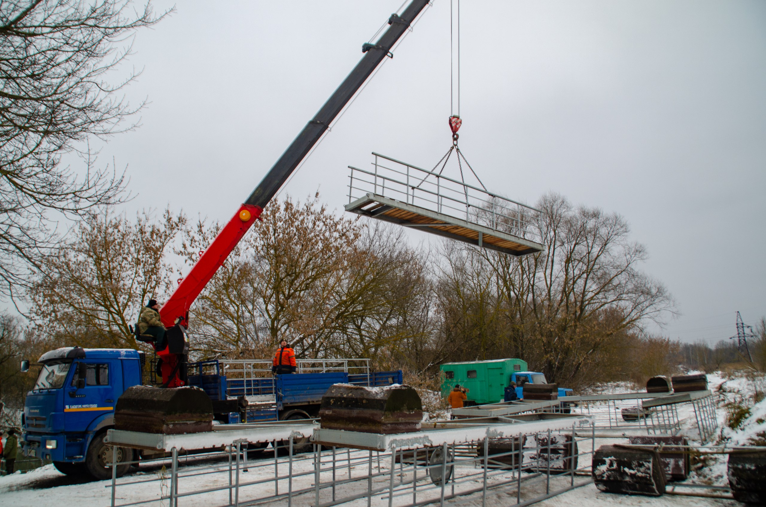 Для удобства дачников у понтонного моста установили освещение, а для безопасности – еще и камеры видеонаблюдения. Теперь, когда сезон закончен, конструкцию демонтируют силами специалистов Дирекции городского хозяйства.