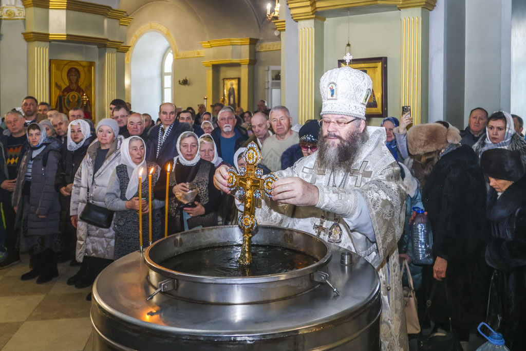 По окончании литургии состоялась великая вечерня, в конце которой под пение тропарей «Глас Господень на водах» священнослужители вышли в центр храма, где глава митрополии совершил великое освящение воды.