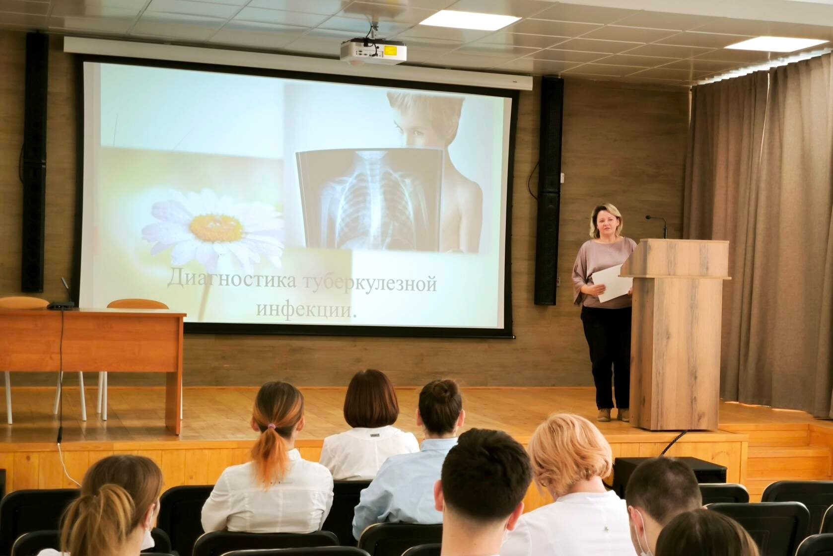 Врач-фтизиатр регионального противотуберкулезного диспансера Татьяна Забуга встретилась с докторами детской поликлиники больницы им. Арх. Луки, чтобы поговорить о скрытой форме туберкулеза у юных пациентов, заострив внимание на диагностике этой патологии.