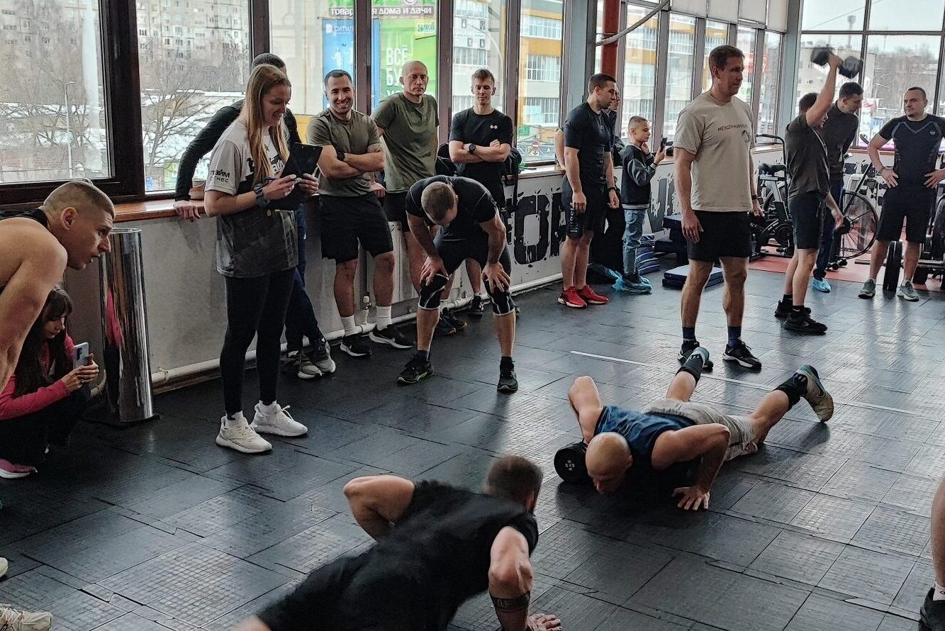 Спортсмены выполняли 4 комплекса упражнений: становую тягу, берпи с перепрыгиванием штанги, работу на велотренажере и командную синхронную работу с различными спортивными снарядами.