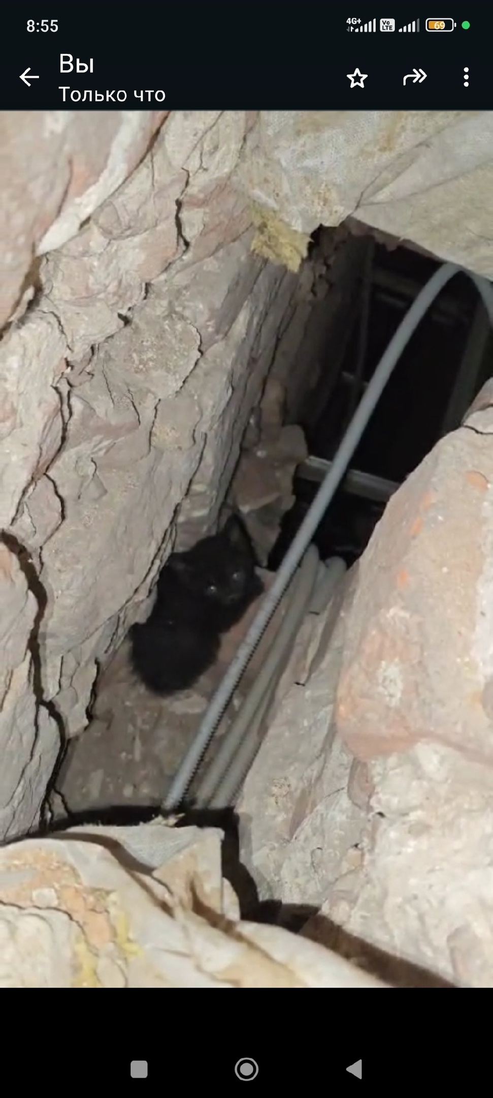 «Пришлось сквозь стекловату пролезть до части несущей стены здания через весь чердак и вытащить котят. Два котенка – черненький полностью и пятнистый с рыжим. Спасибо вам, дорогие, за такую реакцию и поддержку».
