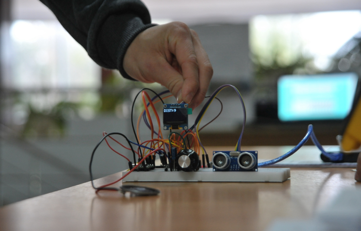На одном из мастер-классов студенты показывали разработанный вручную парктроник, который успешно работал.