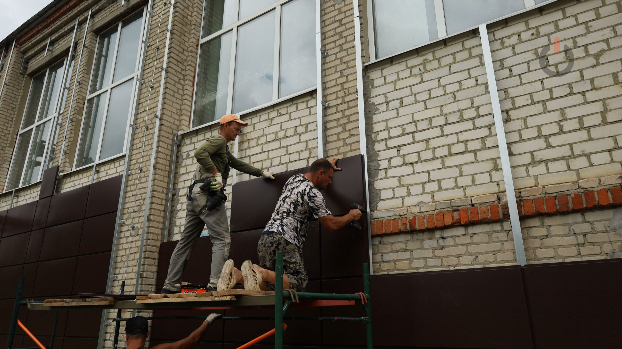 Мероприятия по двухэтажному корпусу школы займут не меньше месяца. В данный момент рабочие завершают обшивку вентилируемого фасада, благоустраивают прилегающую территорию.