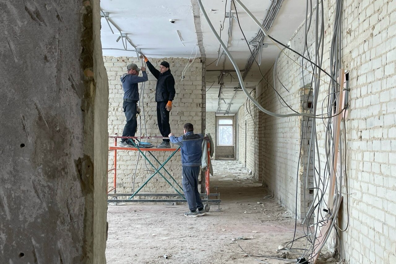 В Тамбове согласно установленному плану продолжают капитальный ремонт Центра образования №13. Работы проходят в рамках национального проекта «Молодежь и дети». Подрядная организация выполняет демонтажные работы. Специалисты меняют электропроводку, инженерные коммуникации, облицовку, стеклопакеты, оштукатуривают стены.