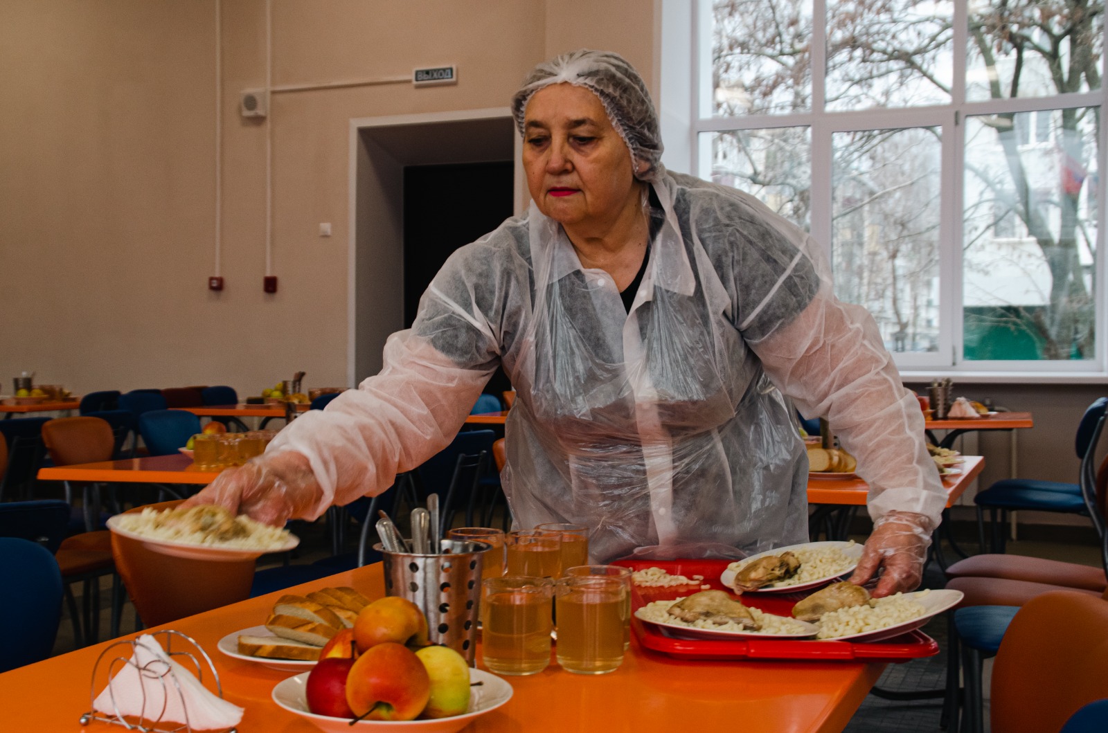 «У нас появился пароконвектомат, посудомойка, большой тестомес. Радует, что увеличился зал. Дети умещаются, и это прекрасно», — говорит старшая смены Наталья Короткова.