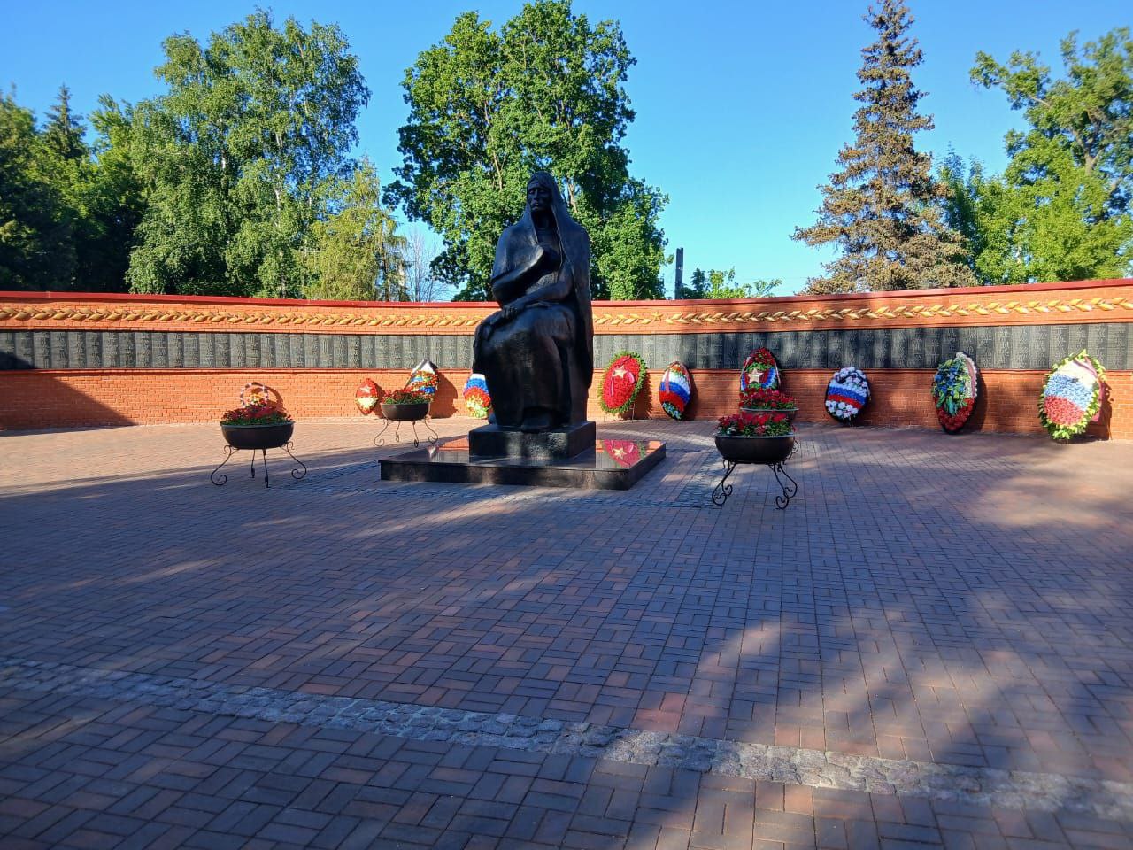 Новая бронзовая скульптура «Скорбящая мать» на Воздвиженском кладбище заменила старую бетонную. Это не просто точная копия: новая отлита по слепку с прежней. В муниципальной Дирекции благоустройства и озеленения подчеркивают: срок службы скульптуры – более 50 лет. Покрытие на дорожках тоже долговечнее прежнего: использованную здесь клинкерную тротуарную плитку применяют для мощения территорий, подвергающихся механическим нагрузкам.