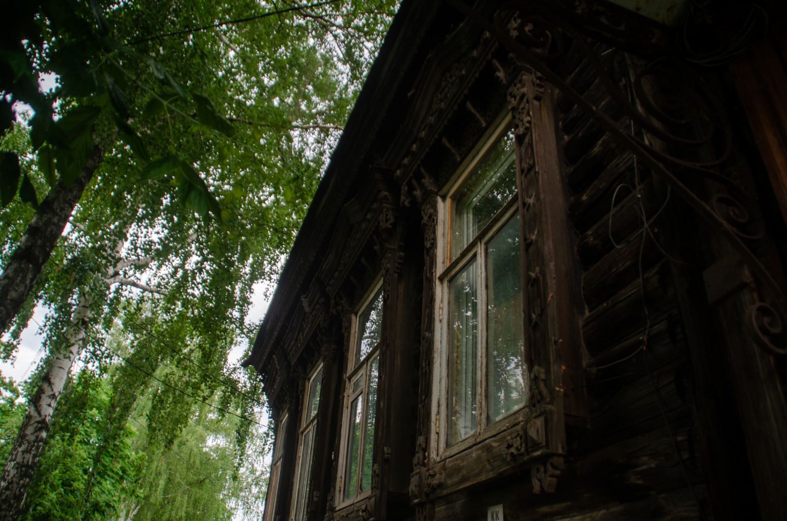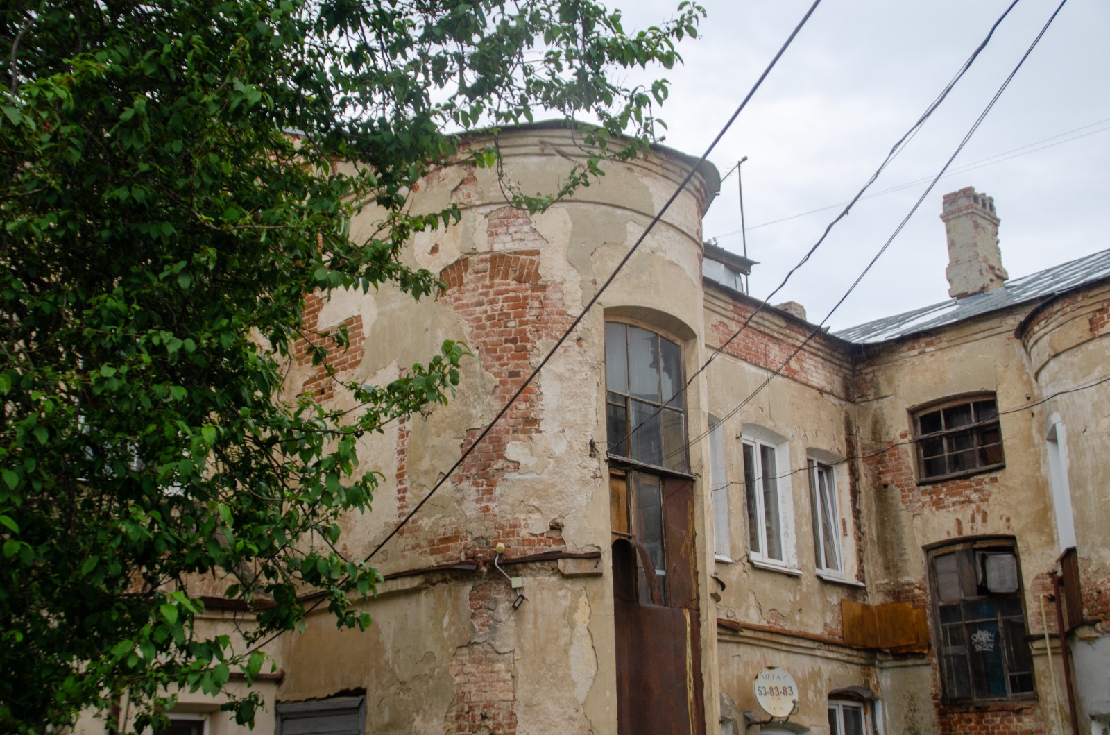 «На этой территории находилось несколько строений: большой деревянный дом и дом совмещенного типа, – рассказывает Денис Силин. – Однако на сегодняшний день сохранилось только одно здание. Рядом с современной многоэтажкой он стоит особняком. Его фасадная стена разделена на две неравные по ширине части. Левая ось выделена дверью, балконом с лепными кронштейнами. В отделке дома используется множество изогнутых, криволинейных и ломаных линий, что составляет его главную особенность».