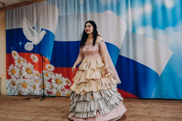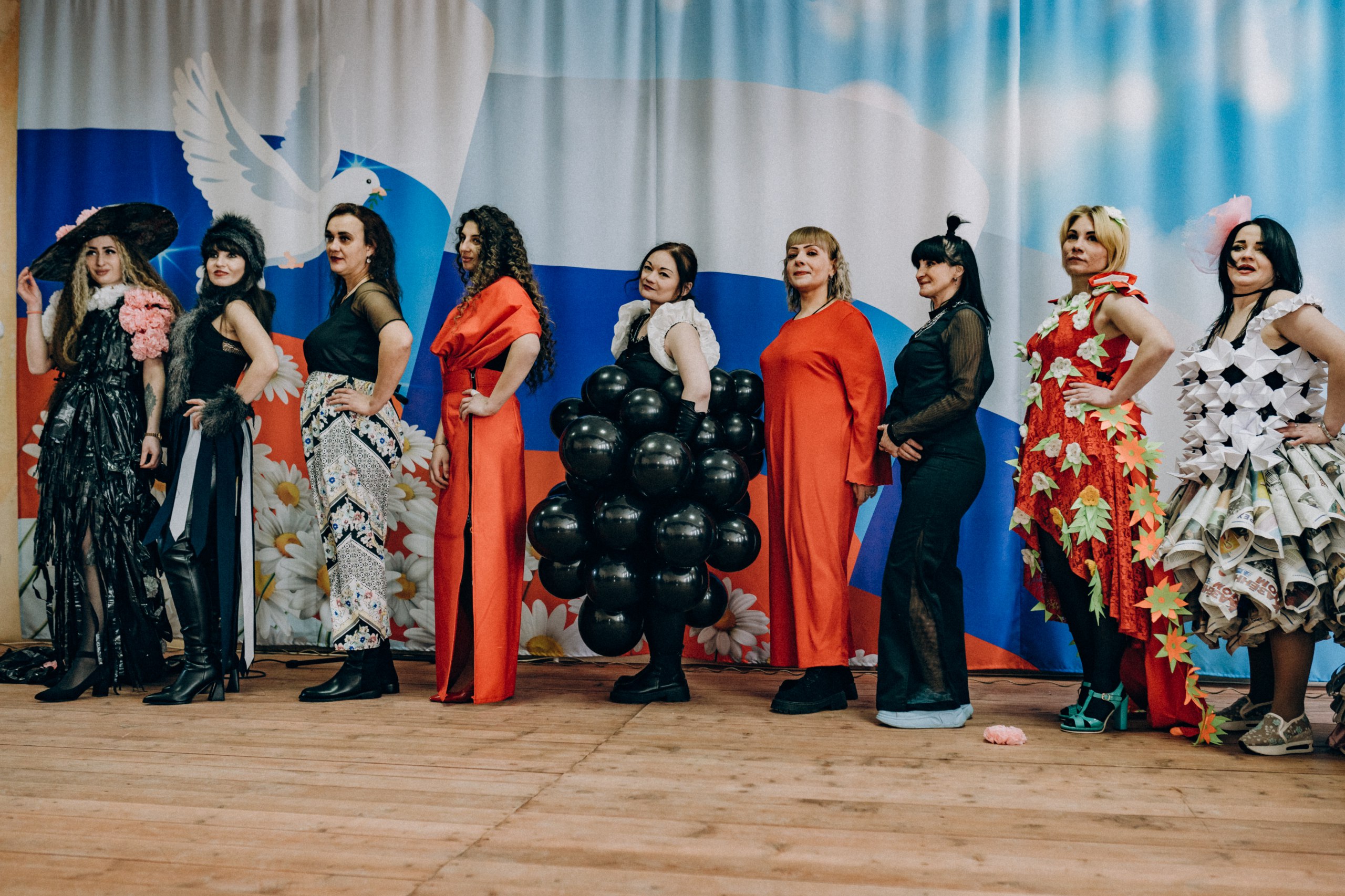 Наряды для модного показа тоже создавали с учетом родного колорита. Здесь и елецкие кружева, и дагестанские орнаменты. Ну и, конечно, женская находчивость. В дело шли воздушные шарики, лоскутки и даже пластиковые тарелки.