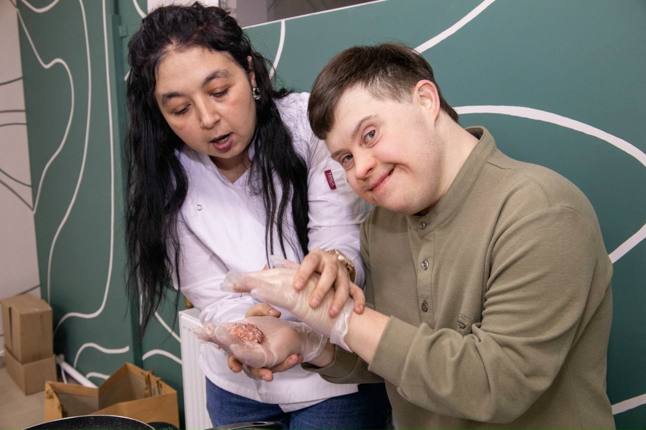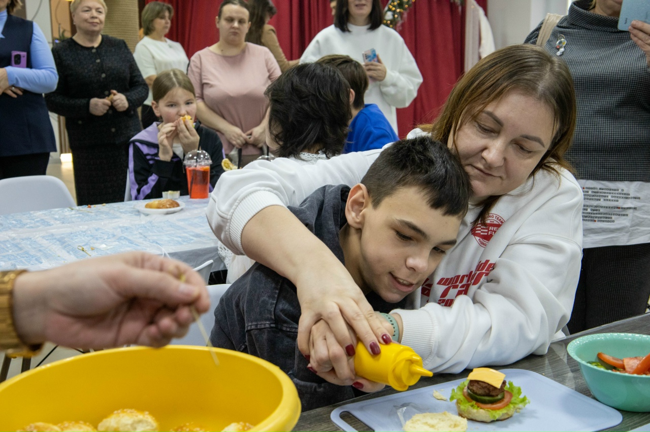 Разные и вместе Даниил Самсонов придирчиво изучает соус для бургера, пробует, анализирует вкусовые оттенки: