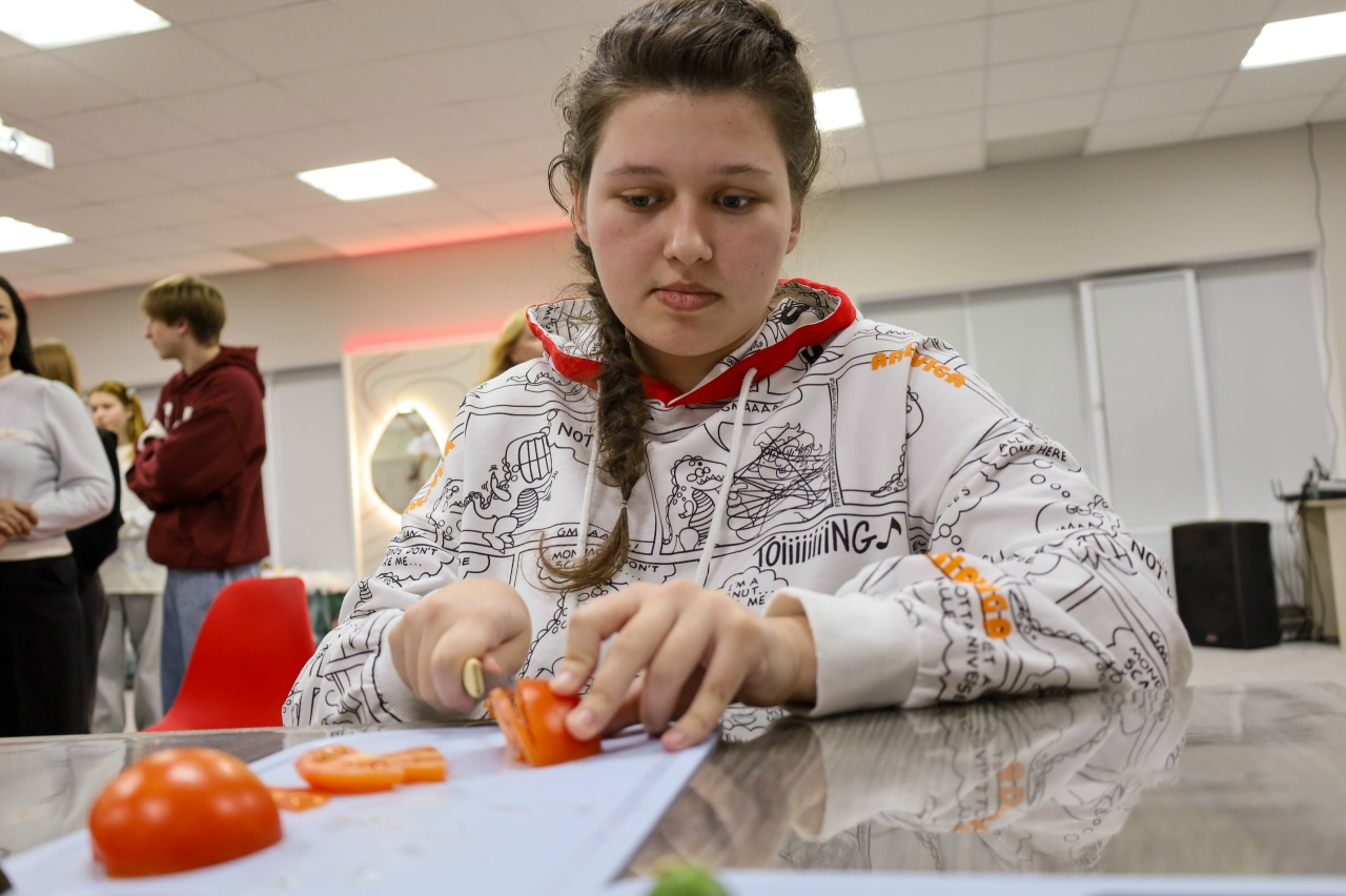 Фуршетный мастер Екатерина Баранова – участница программы «Мама на селе». Проводит мастер-классы по приготовлению фуршетных закусок, в том числе обучает жен участников СВО и мам из многодетных семей.