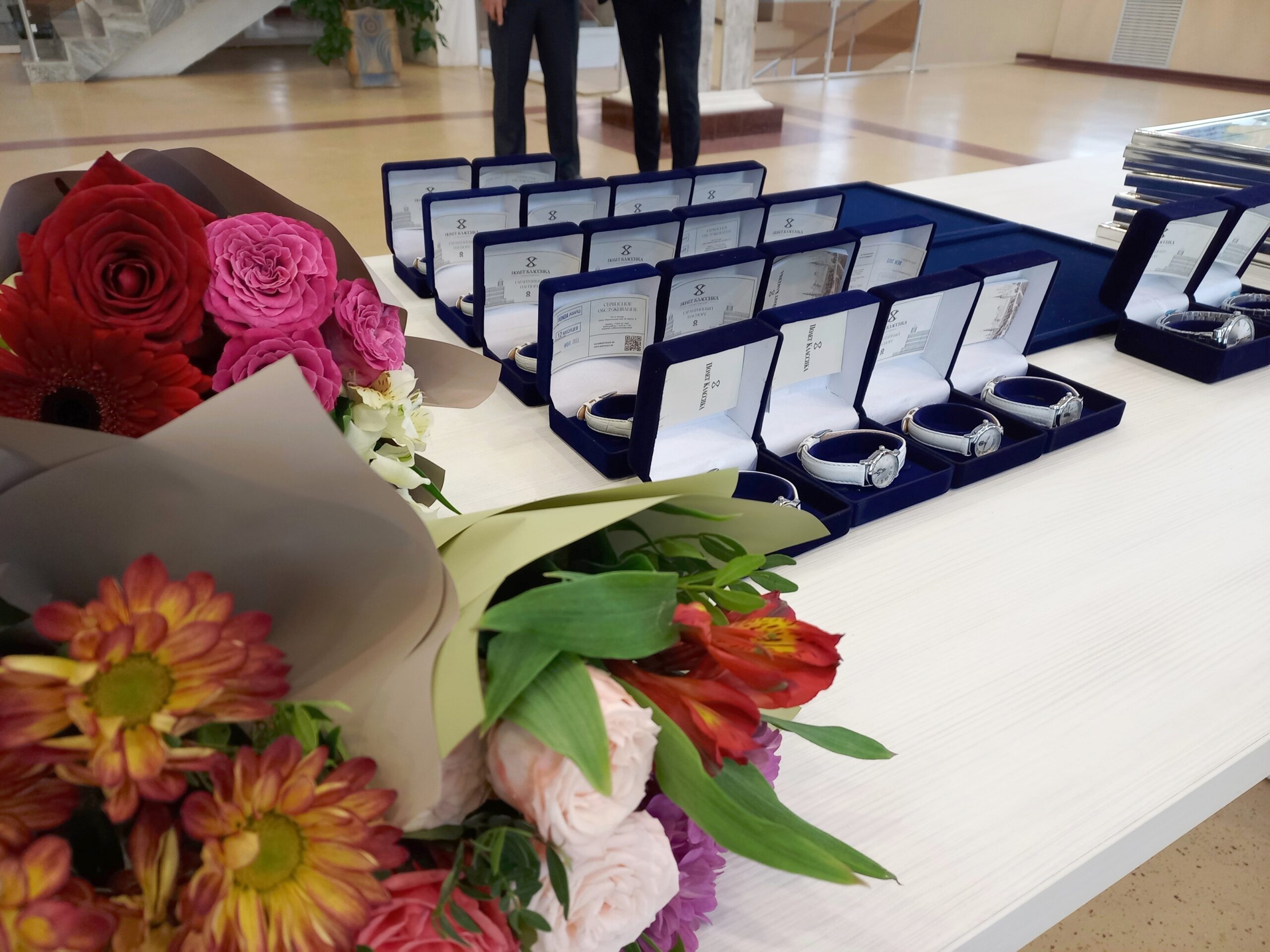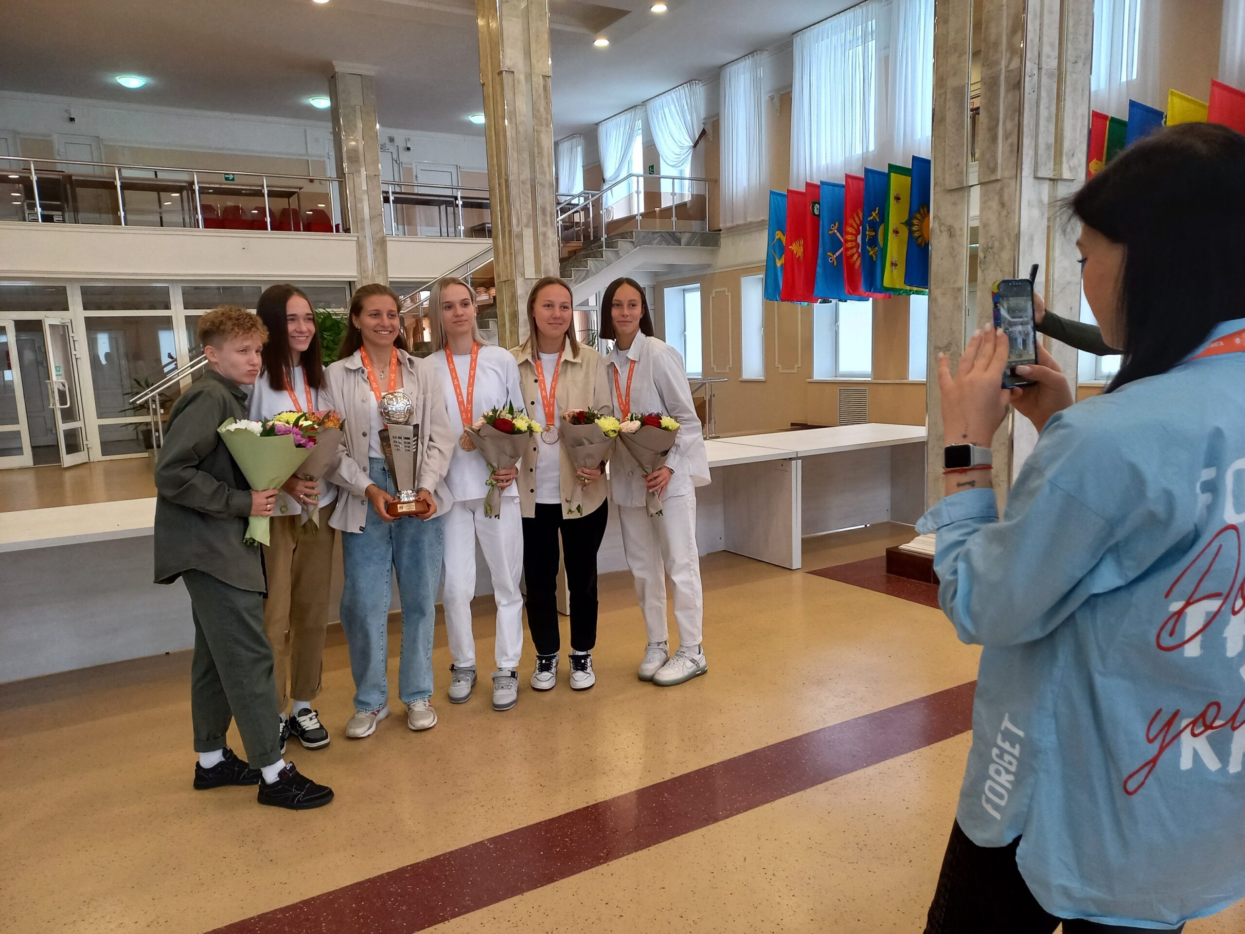 Спортсменкам и тренерам вручили именные награды, цветы, а также часы с символикой региона
