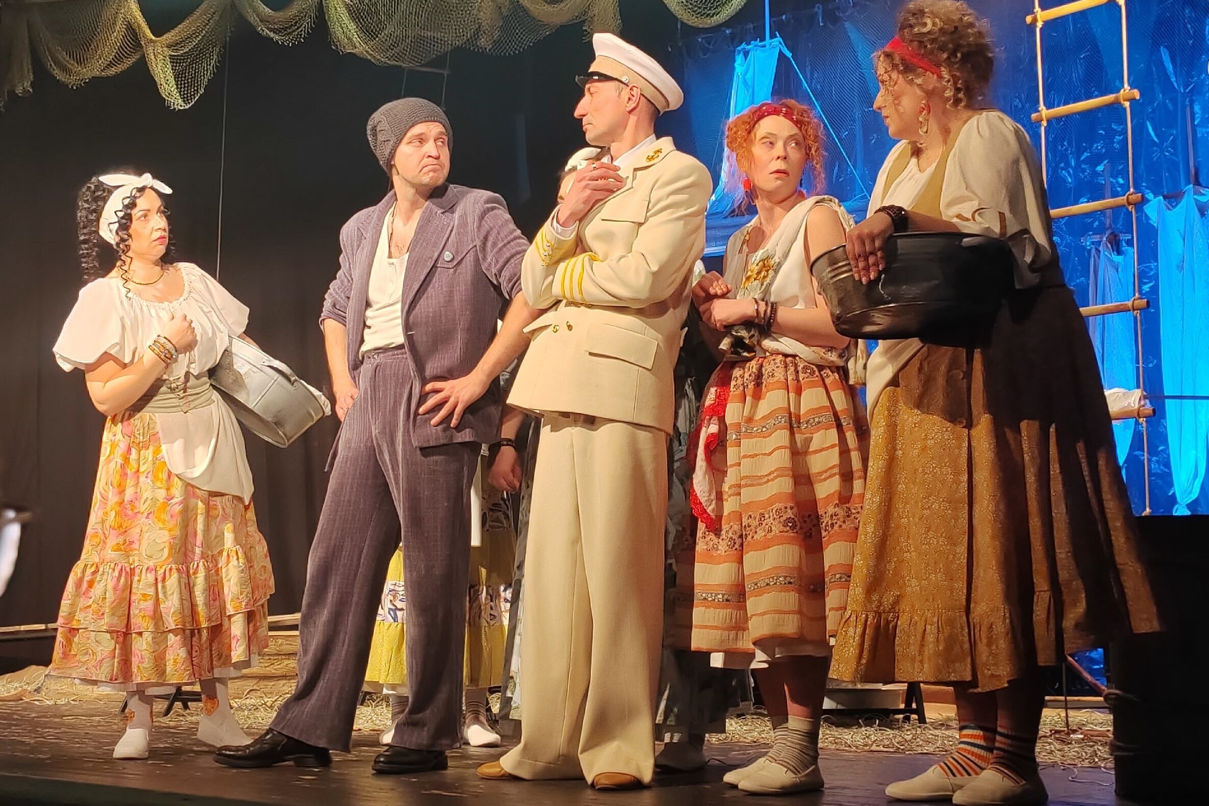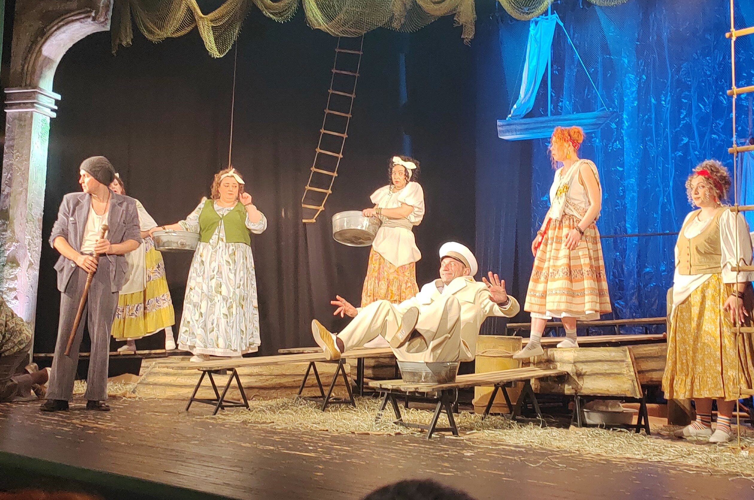 В Тамбове 19 марта на сцене Молодежного театра представили постановку по пьесе Мольера «Плутни Скапена». (12+) Действие спектакля разворачивается в солнечном Неаполе – в Италии. Мольер написал эту пьесу в 1670 году. Текст классика претендует на вечную актуальность. Худрук Тамбовского молодежного театра и режиссер постановки Виктор Федоров перенес действие произведения на 300 с небольшим лет вперед – в 80-е. Брюки в вертикальную полоску, типичные для итальянской моды тех лет, белые костюмы, музыка Адриано Челентано и объемные деревянные декорации погружают зрителя в атмосферу итальянского летнего порта и влюбленности.